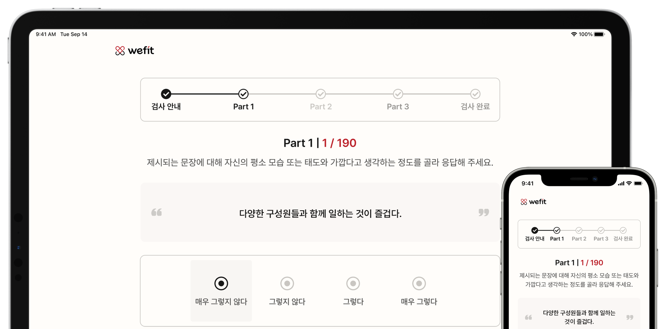 위핏 검사는 온라인으로 진행합니다. PC는 물론 모바일과 태블릿에서도 편리하게 응시 가능합니다.